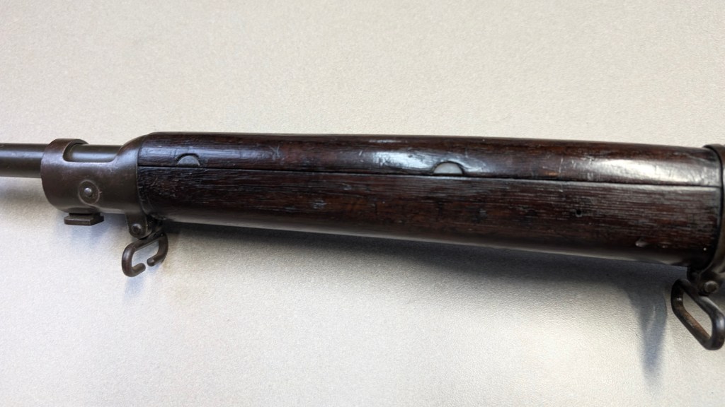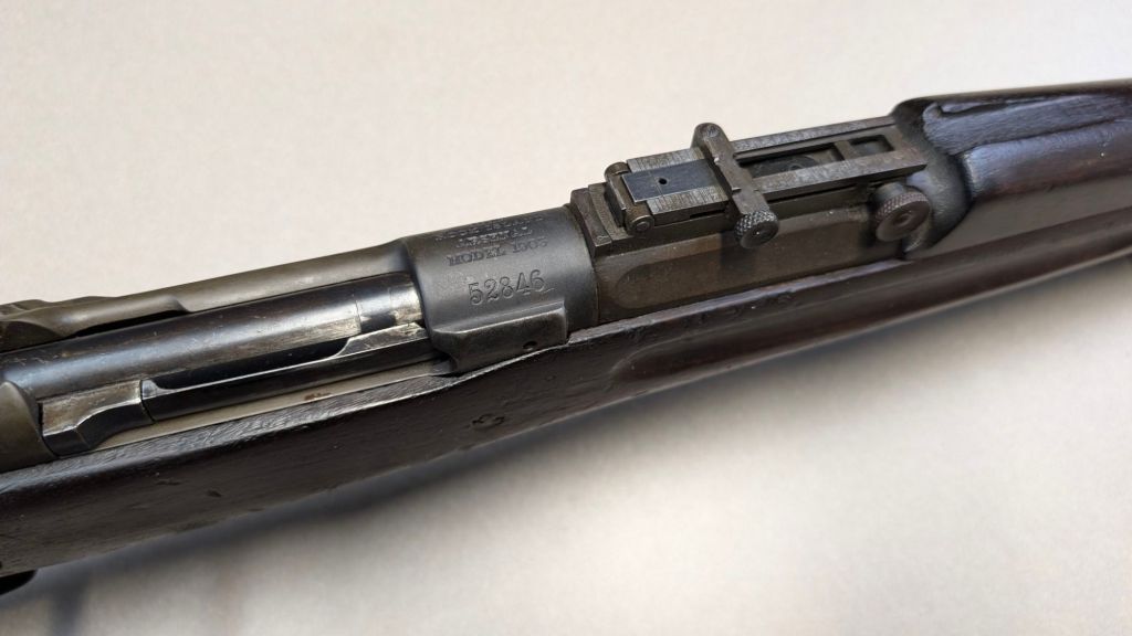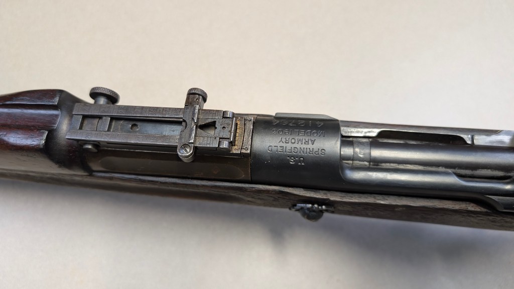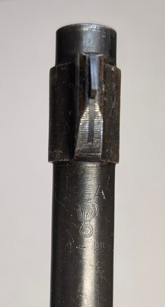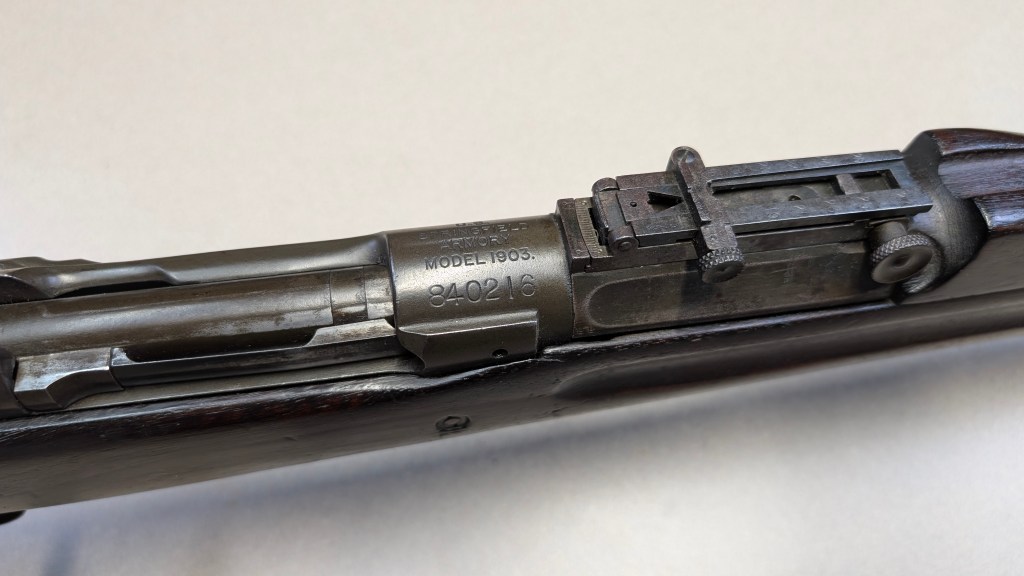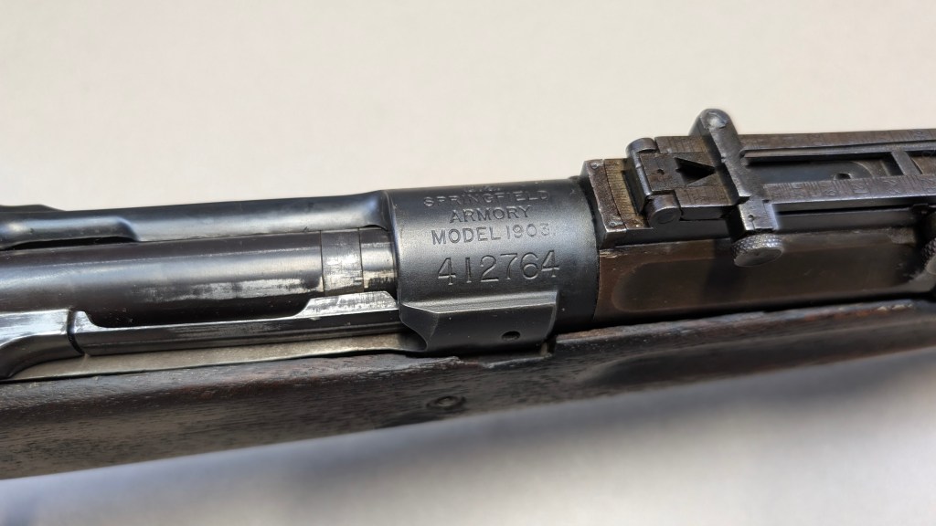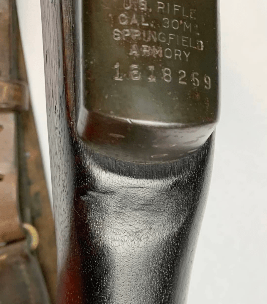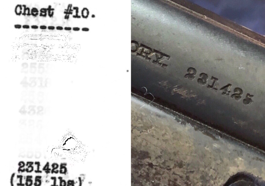 While USMC M1903 #324219 was surveyed in 1926, the Marines did not record if a serial number was for Springfield Armory or Rock Island Arsenal rifle, which overlapped each other in serial number ranges. We do know that the Marines received very large amounts of Rock Island Arsenal rifles in the 300,000 serial number range. Coupled with the Marine Corps attributes on this rifle, the document’s serial number its practically certain to be referring to the Rock Island Arsenal rifle below. #324219 has the appropriate #10 sight system used by the Marine Corps in the Interwar years, checkered buttplate, and Springfield Armory 1-30 dated barrel dating to its final major overhaul (Plowman collection).