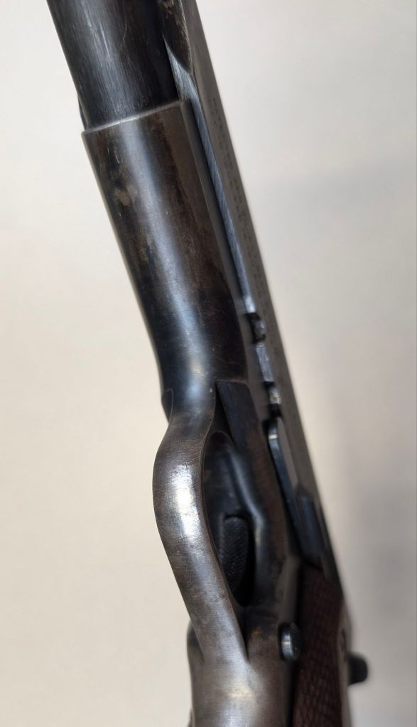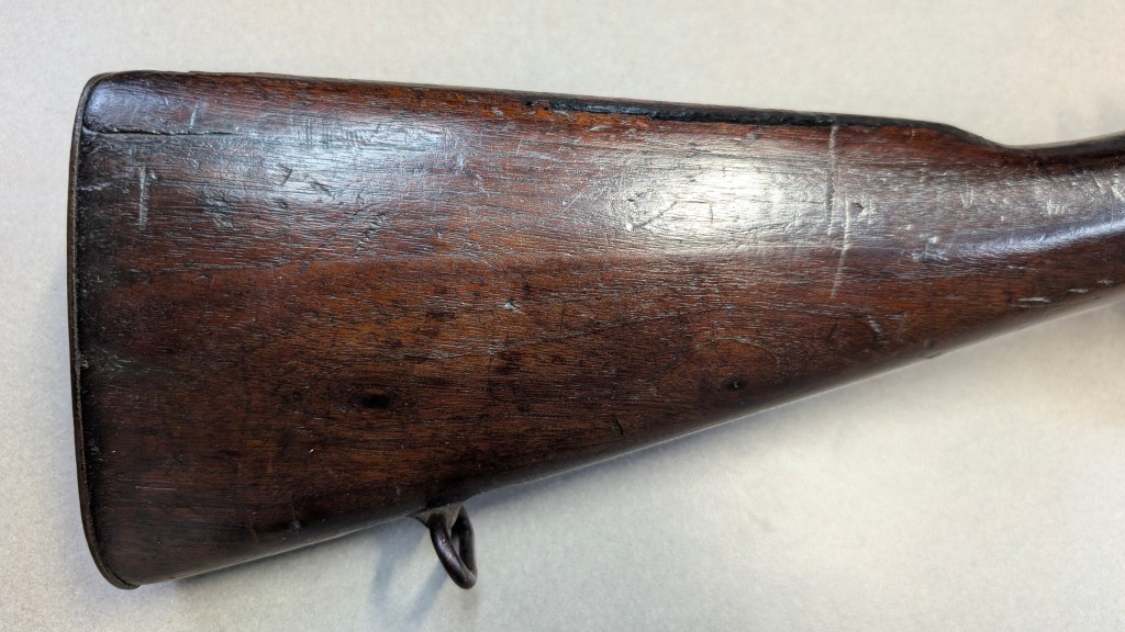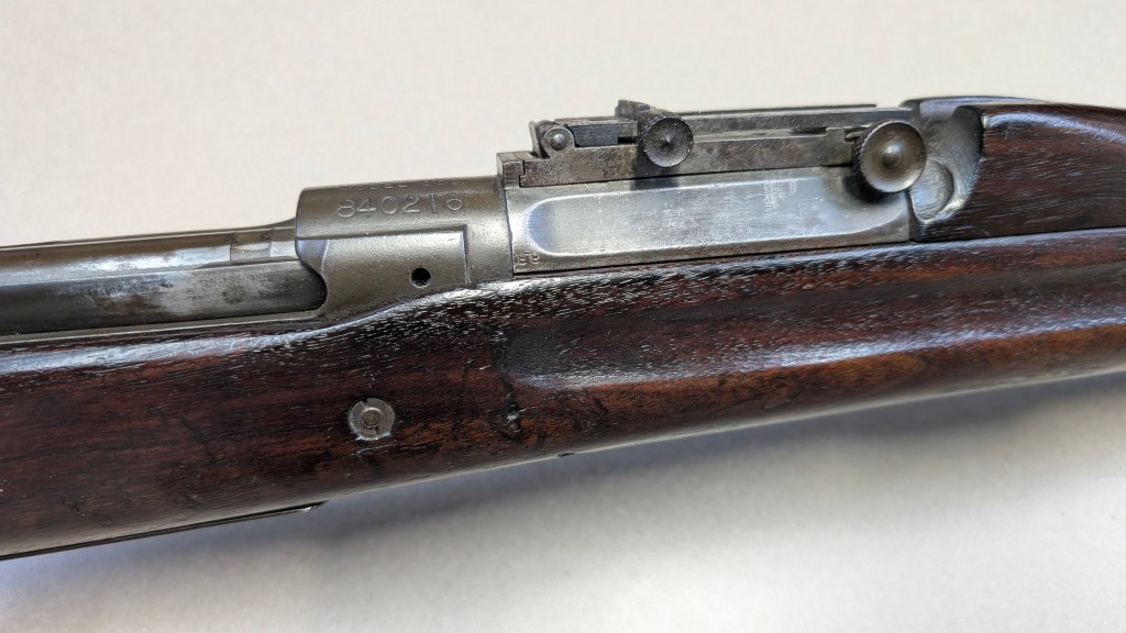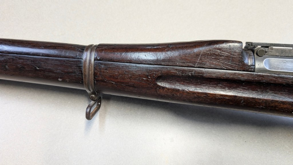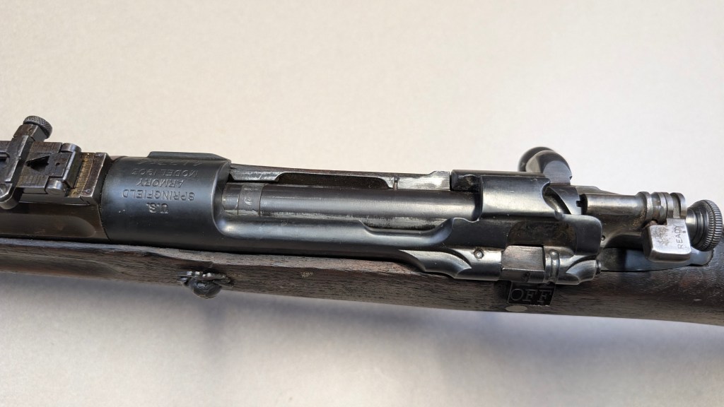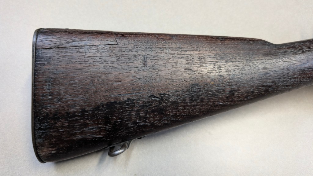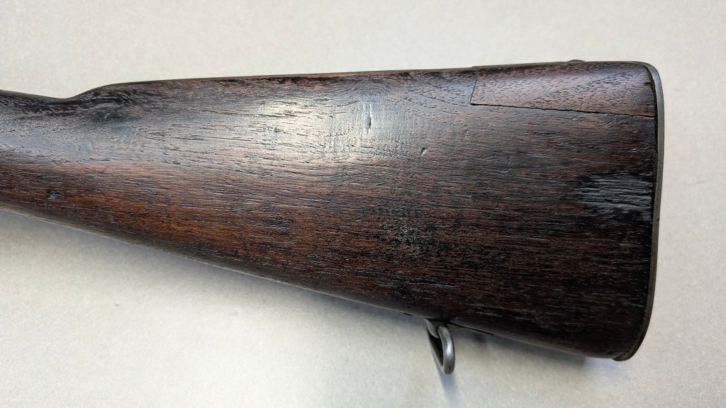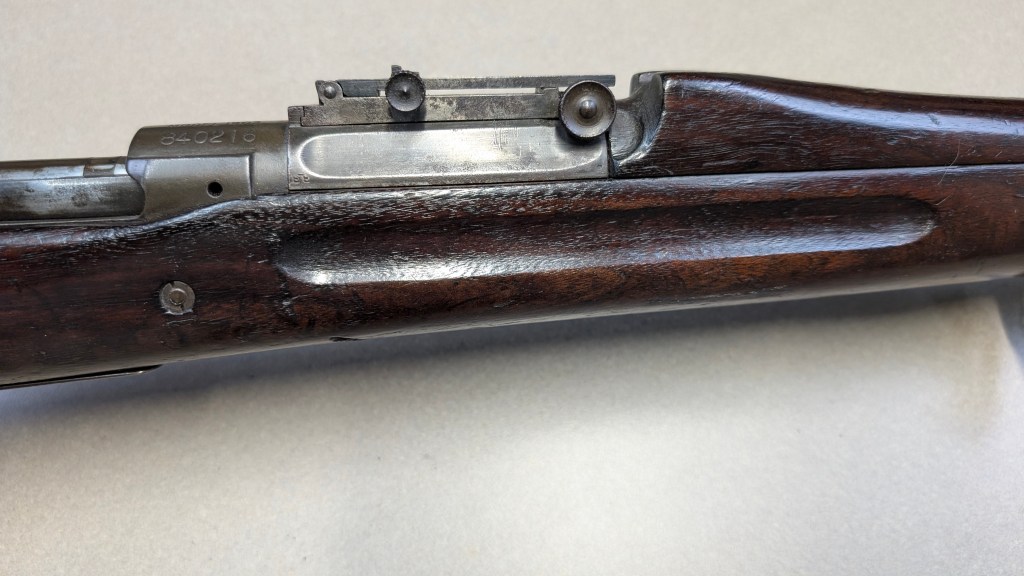 While USMC M1903 #324219 was surveyed in 1926, the Marines did not record if a serial number was for Springfield Armory or Rock Island Arsenal rifle, which overlapped each other in serial number ranges. We do know that the Marines received very large amounts of Rock Island Arsenal rifles in the 300,000 serial number range. Coupled with the Marine Corps attributes on this rifle, the document’s serial number its practically certain to be referring to the Rock Island Arsenal rifle below. #324219 has the appropriate #10 sight system used by the Marine Corps in the Interwar years, checkered buttplate, and Springfield Armory 1-30 dated barrel dating to its final major overhaul (Plowman collection).