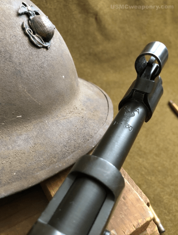 Following World War I, the 4th Marine Regiment would be involved in combat operations and occupation in the Dominican Republic. USMC M1903 #412764 is documented with the 4th Marines in 1922 during this time. An interesting rifle, #412764 has an Eagle, Globe and Anchor threaded into one of the stock’s cross bolts, as well as numbered front sights (Plowman collection).