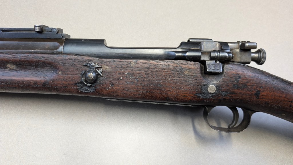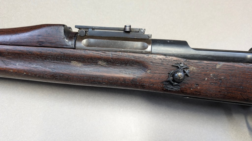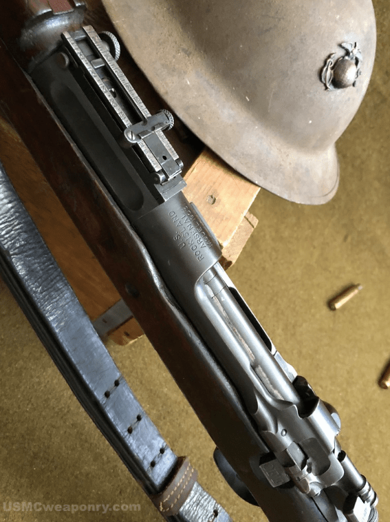 USMC Rock Island Arsenal M1903 #324219, documented 2nd Marine Regiment of the 2nd Marine Brigade. The 2nd Marine Brigade had been involved with the post World War I “Banana Wars” conflict in Haiti, and many of their rifles were in need of service. Upon arrival to California, the San Diego Depot Quartermaster surveyed the Brigade’s rifles.