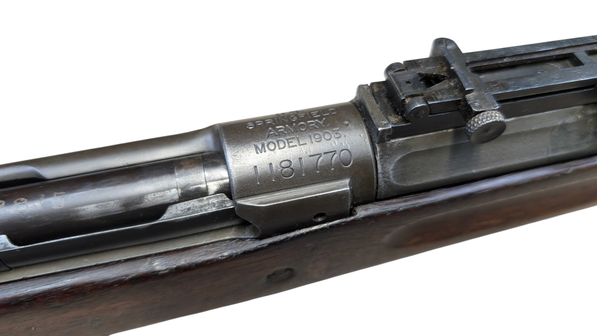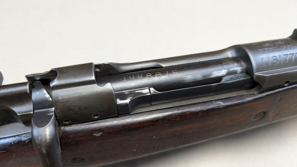 Every year, the Marine Corps Rifle Team would receive a shipment of brand new National Match M1903s from Springfield Armory. #1181770 was one of 50 National Match M1903s received by the Marines in 1928. Later in its service #1181770 was built into a “Special Target” rifle, the USMC designation for National Match M1903s that were rebarreled with standard-issue service rifle barrels but still used for lower level matches. It was from these rifles that the Marine Corps built their M1903 Unertl sniper rifles. While #1181770 was never built into a Unertl sniper, it is one of just several documented USMC National Match rifles found thus far (Plowman collection).