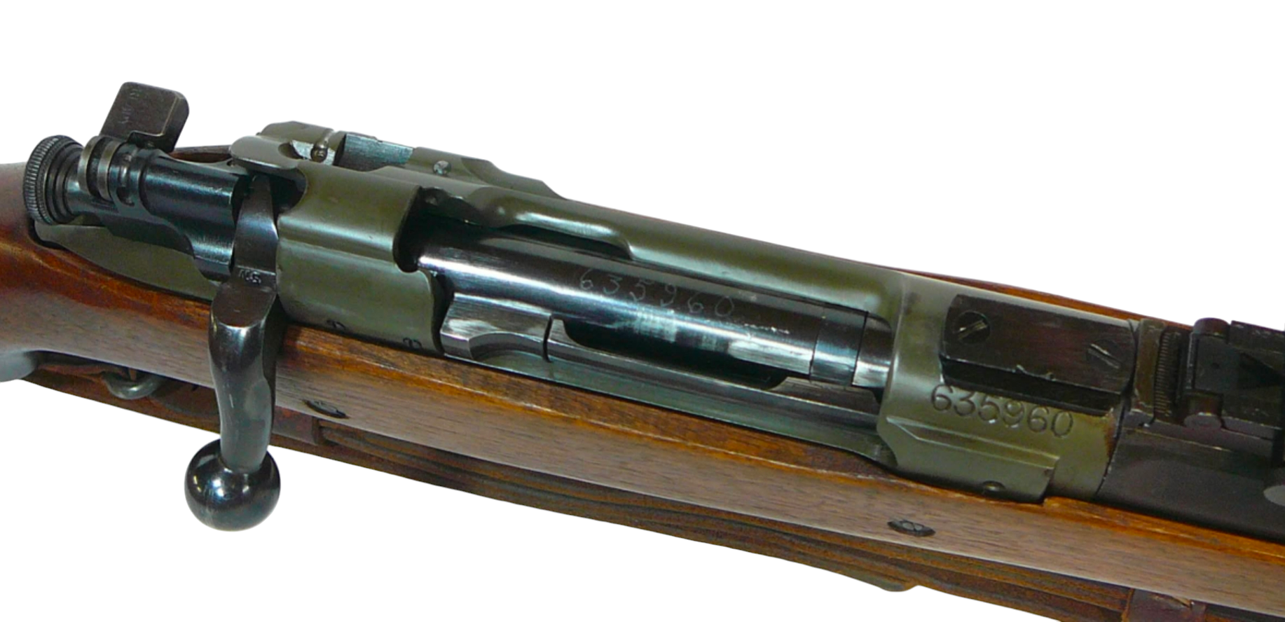 Springfield Armory M1903 #635960 almost certainly began its life as USMC M1903 A5 sniper rifle. Following World War I this rifle like many other A5 sniper rifles was broken down and stored as a loose receiver. In 1927, the Marine Corps Rifle Team requested the construction of several International Match M1903s, with #635960 being one of the receivers used for the builds. Once converted into an International Match rifle, #635960 would have a Cutts Compensator attached for testing before being issued to Gunnery Sergeant Morris Fisher for use in the Wimbledon Match during the National Matches at Camp Perry. Concluding an incredible story, #635960 would be one of the 1047 National Match rifles built into a USMC M1903 Unertl sniper rifle for service in World War II, which is the condition it is in today (Norton collection).