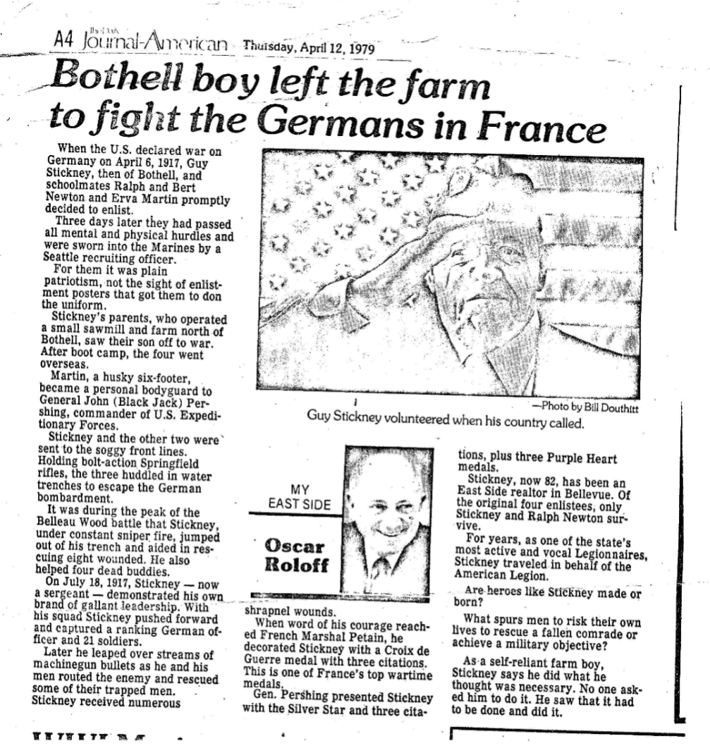 Documented to Sergeant Guy Charles Stickney, 18th Company, 2nd Battalion, 5th Marines Battle of Belleau Wood