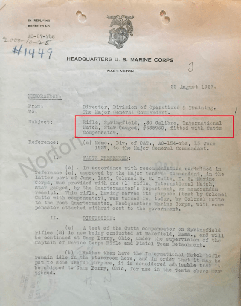 Documented to the Marine Corps Rifle Team in 1928
