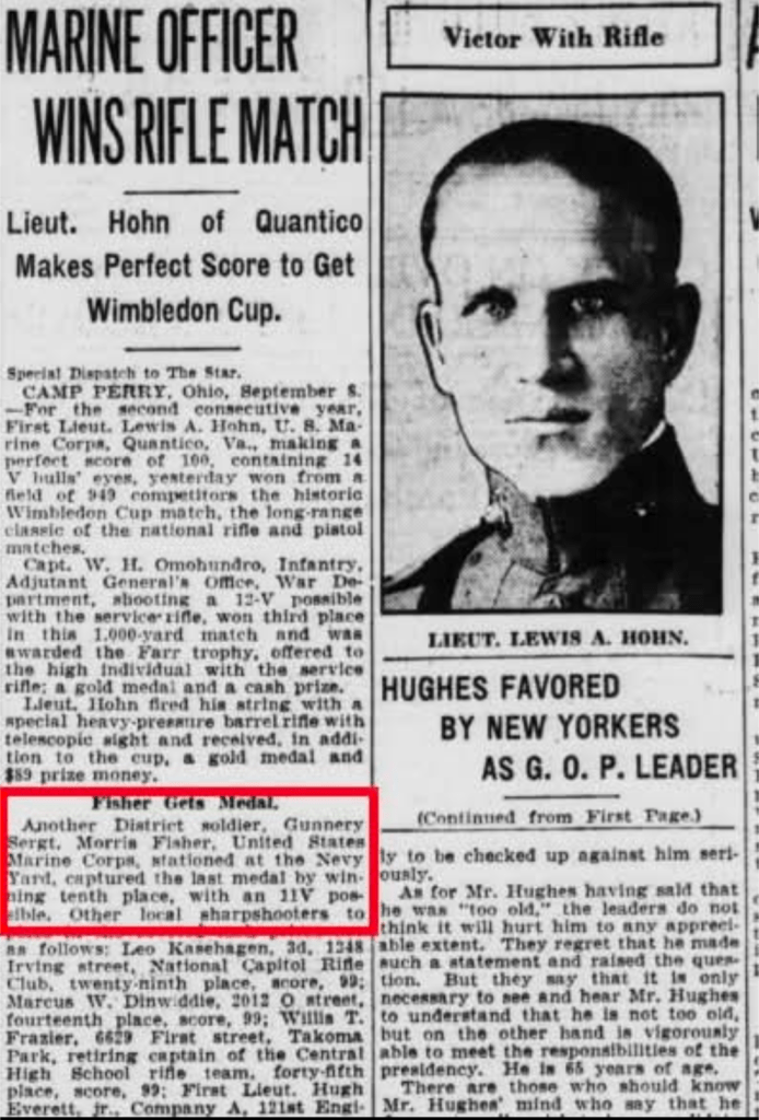 Documented as used by Gunnery Sergeant Morris Fisher as an International Match rifle at Camp Perry