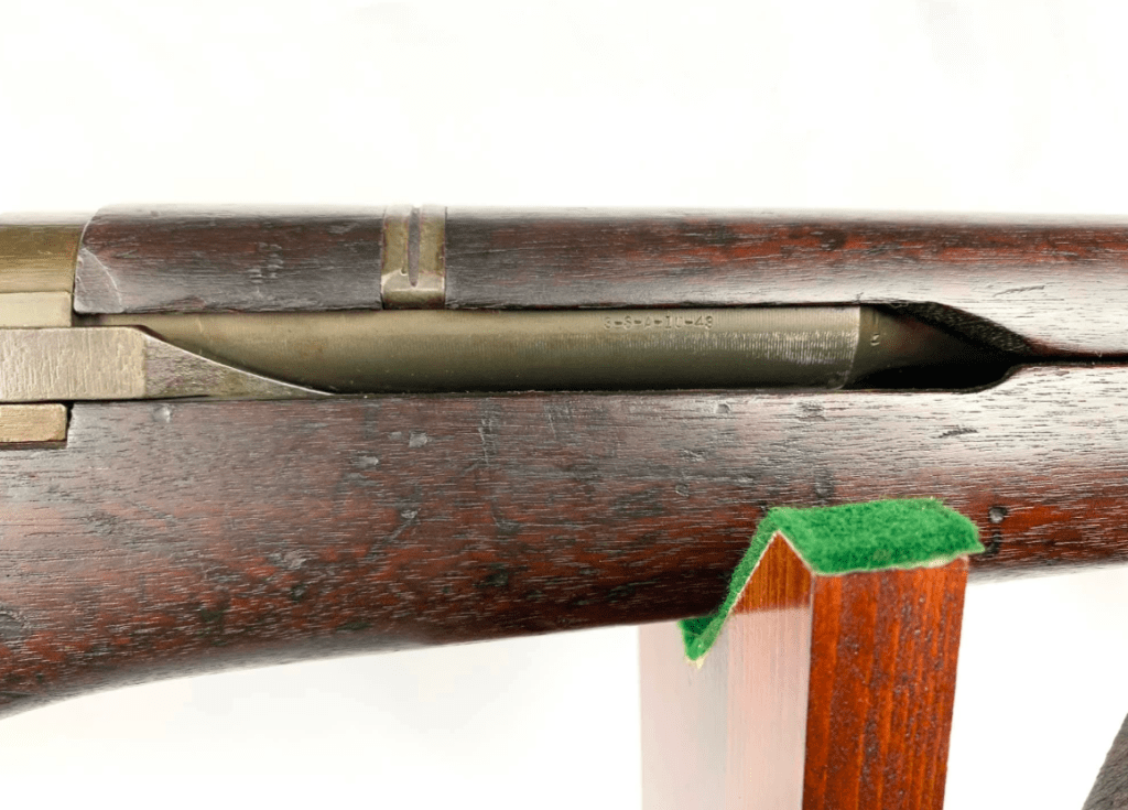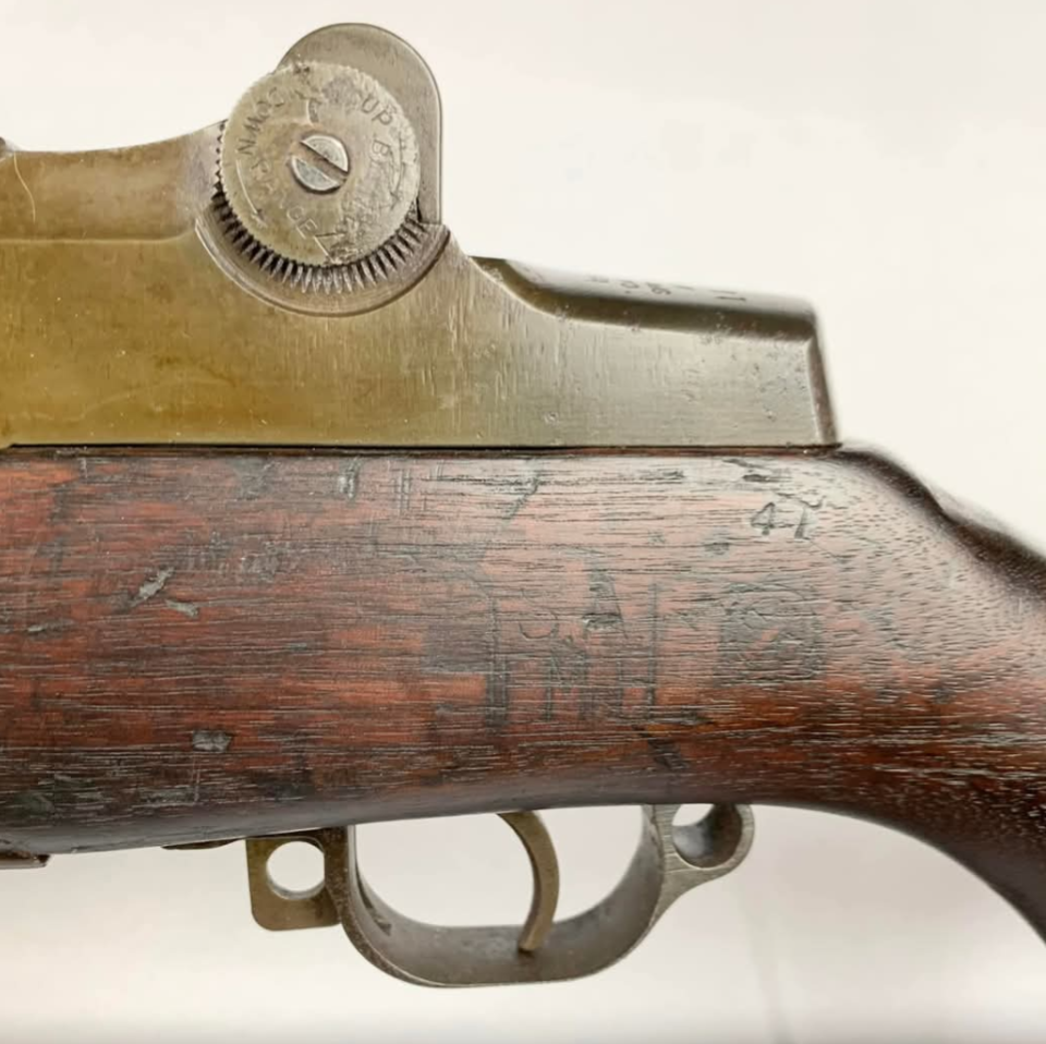 Iwo Jima bringback M1 Garand #2020049 still has traces of volcanic sand in the stock.