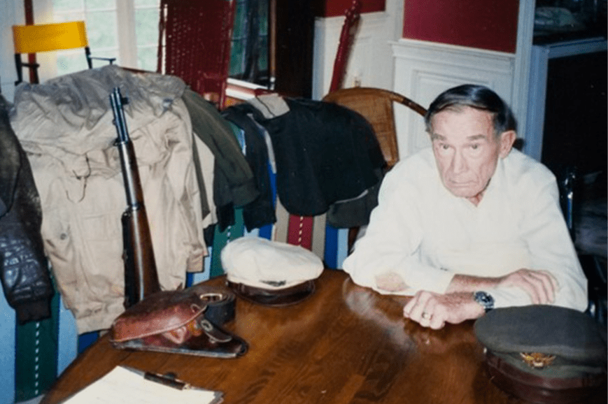 Major Todd Moore at his home with M1 Garand #2020049 and other items from his time in service.