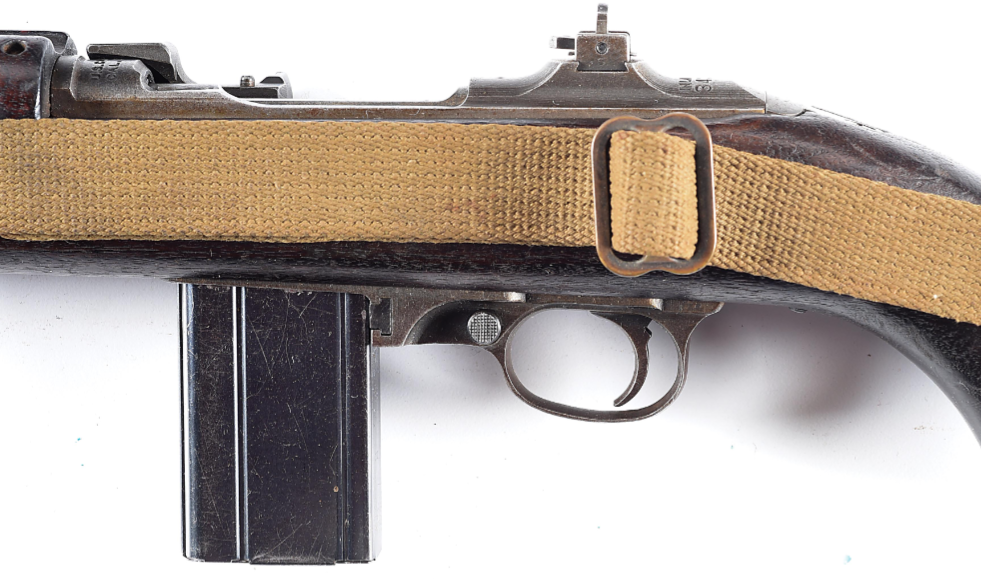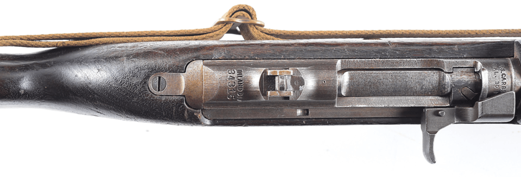 During the final days of the Battle of Iwo Jima, the B-29 “McGugin’s Marauders” was forced to make an emergency landing on the island. The B-29’s navigator, Captain Malcolm “Mal” Fleming would write an incredible account of his week on an island surrounded by death. As the fighting wound down, Captain Fleming and some of his crew would accompany Marine officers in search of Japanese samurai swords to bring home as souvenirs in the network of caves the defenders occupied during the battle. One large cave the group encountered was full of all sorts of Japanese and American weapons, with the coveted samurai swords in a far back chamber. Being met with Japanese gunfire as the group attempted to take the swords, the group grabbed what they could on the way out before sealing the cave shut with explosives. Captain Fleming would grab USMC M1 Carbine #34315 in haste on his way out, and take it home with him after the war.