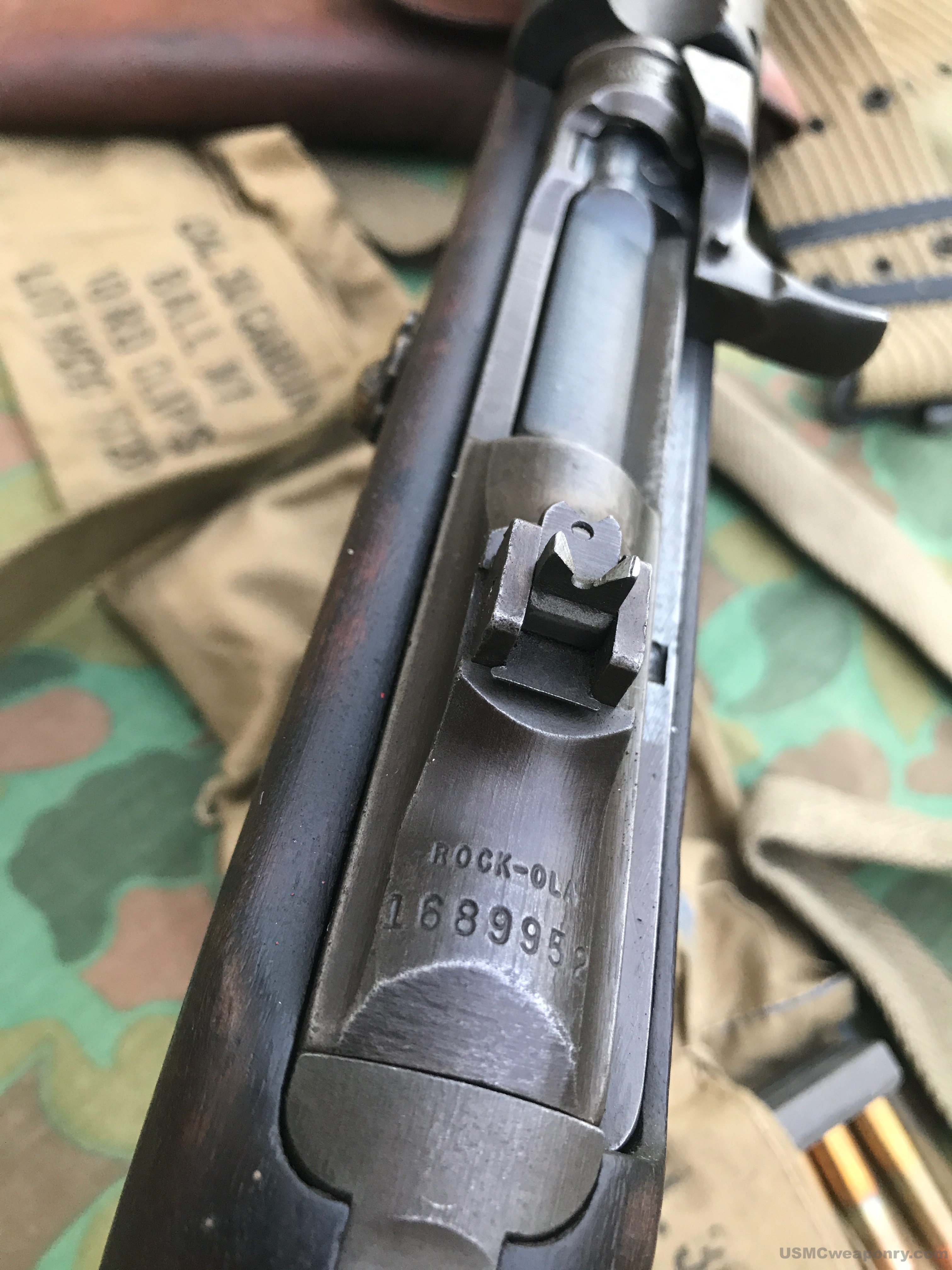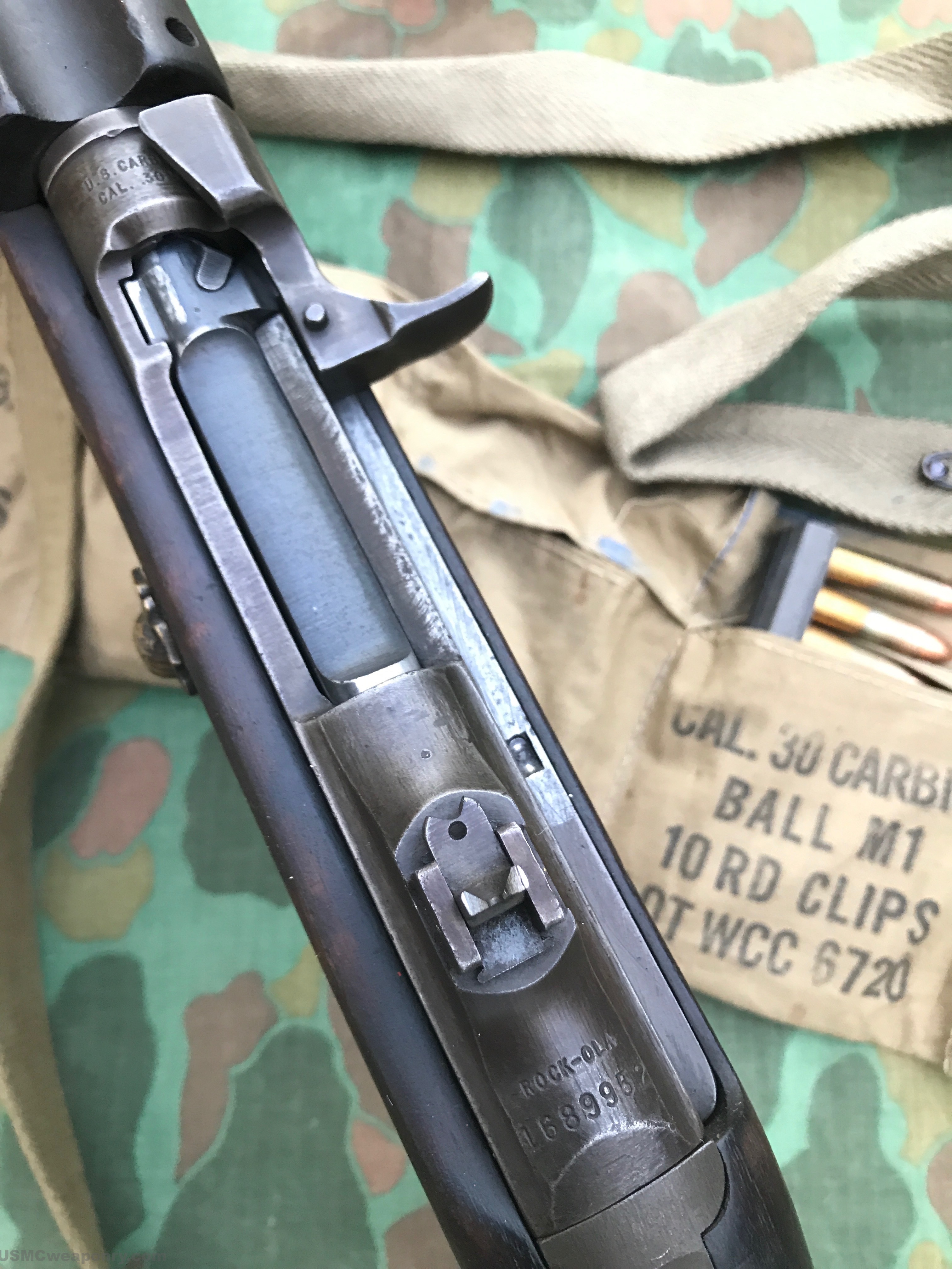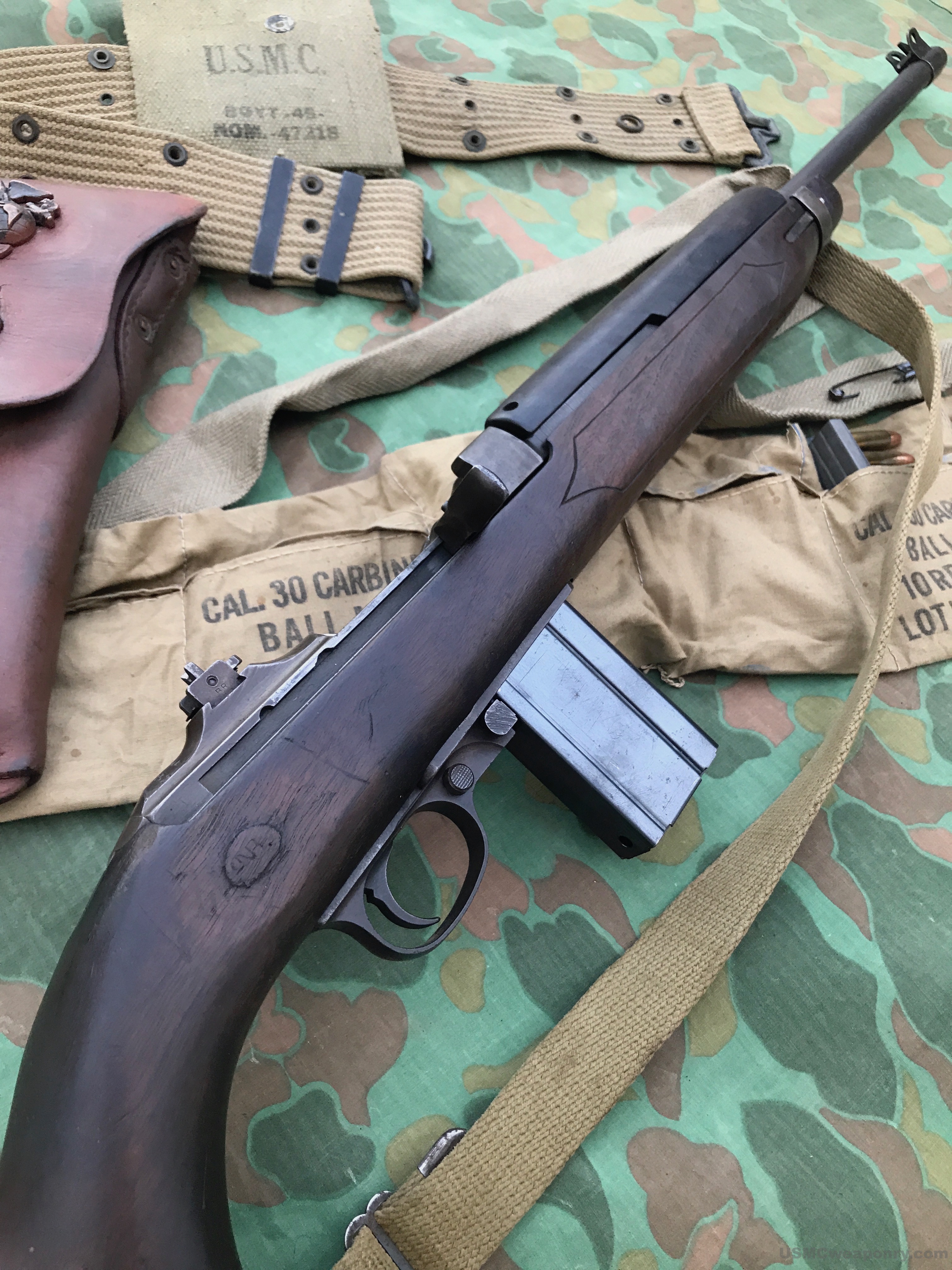 The Marine Corps would receive M1 Carbines from all manufacturers and they would be exactly the same as those issued to other services, making identification difficult and extremely rare. The only way to definitively identify an M1 Carbine as having served with the USMC is through the presence of documentation. Beyond this, the only attribute that can increase the likelihood of a given M1 Carbine being of USMC provenance is a modification to the rear sight. Marines in the South Pacific were keen to file their rear sights into a V to allow better target acquisition in the dense jungles and during the frequent nighttime Japanese banzai charge. There are solid examples of V-Cut M1 Garands, M1941 Johnson rifles and M1 Carbines documented to the Marine Corps. V-Cuts were not particularly common in M1 Garands, but quite a few M1941 Johnsons and M1 Carbines share this trait.It is important to note that the V-Cut was not strictly Marine however, as US Army soldiers would do this modification as well. That said, it has been observed on M1 Carbines with strong USMC provenance at a higher frequency and can increase the likelihood of Marine Corps service.