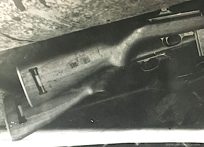 Some M1 Carbines can be identified as having served with the Marine Corps if they have provenance as a being brought home by a serviceman. A good example of this is Inland M1 Carbine #34315. Manufactured very early in the first production run, #34315 is largely original and in fair condition with a copious amount of volcanic sand remaining in the stock, particularly behind the buttplate. Sold at auction last year with Captain Fleming’s narrative and a signed document identifying #34315 as the “rifle” he brought home with him, this M1 Carbine is an excellent time capsule to the Battle of Iwo Jima and a great example of a battlefield bring-back.