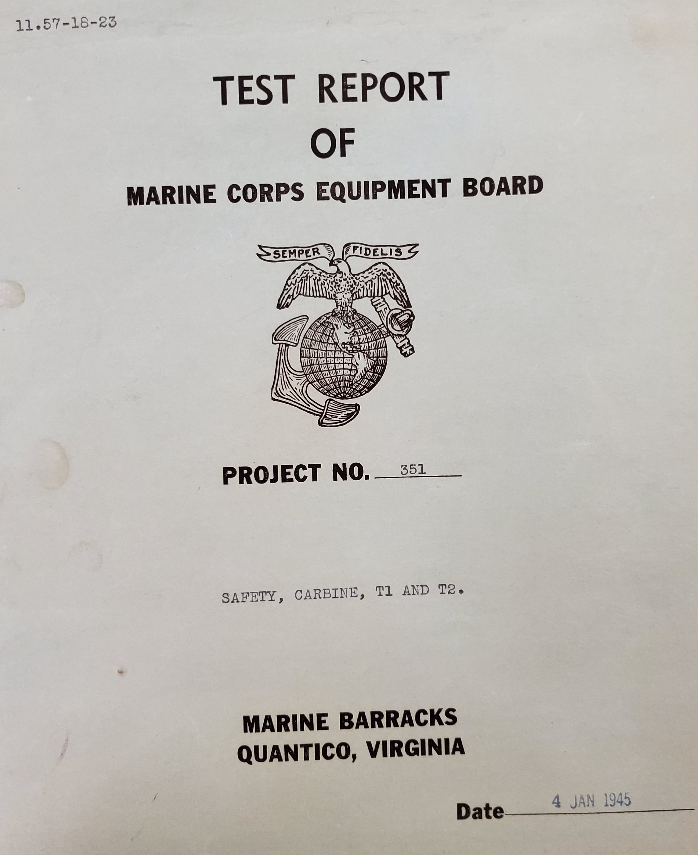 Marine Corps test report of the improved safety dated January 4th, 1945 (USMC).