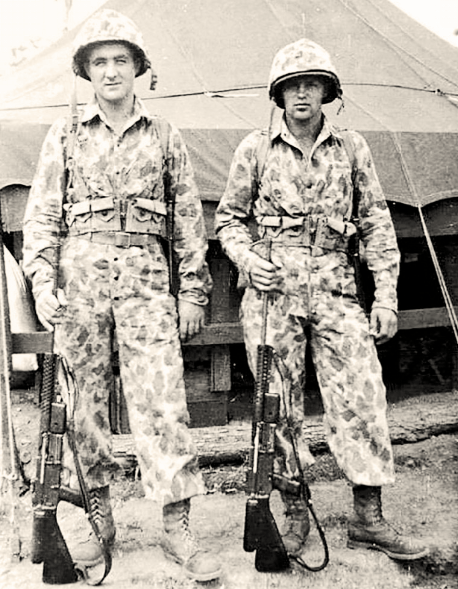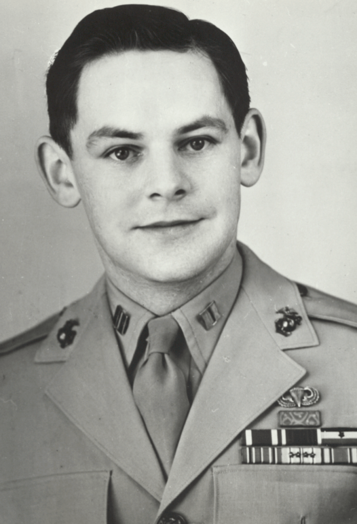 Marine Captain and Distinguished Rifleman Melvin Johnson testing his rifle (NARA).
