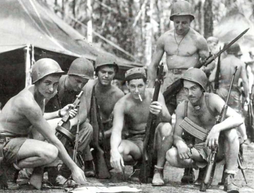 Parachute Battalion Marines on Bougainville in 1943. Due to their small scale use, relatively few photos exist of the M1941 Johnson in operational use. (USMC).