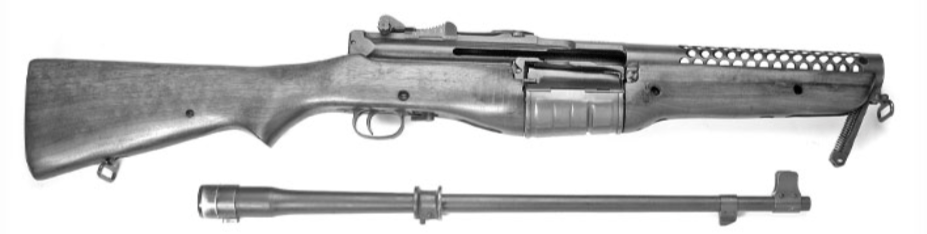 By far the most interesting M1941 remaining in Marine Corps possession, #A0525 has had a Johnson Light Machine Gun barrel installed and the rear sight peep removed entirely (USMC History Division).