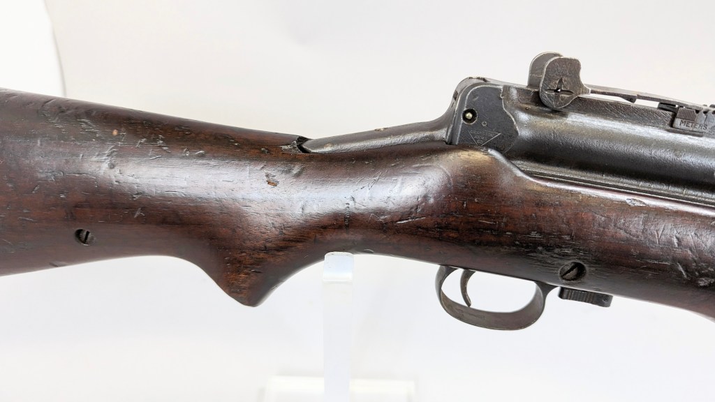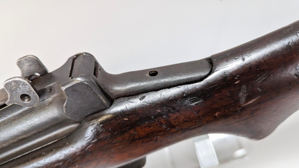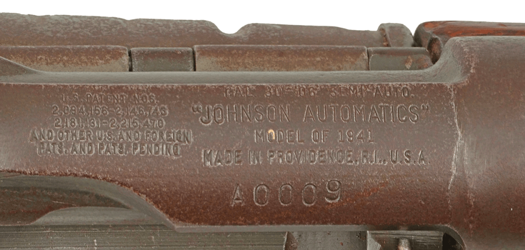 USMC provenance M1941s also appear in loose serial number ranges. Of the first 23 rifles acquired by the Marine Corps, 20 of the serial numbers are in the 7xxx through 9xxx range, with only three being earlier. Of two subsequent smaller shipments, the first shows more in that range as well as A-prefix rifles, and the latter the majority are B-prefix rifles. The Marine Corps received 750 M1941s, the majority in a 650 rifle shipment between the first 23 and the first small shipment in October of 1942. Considering several documented bring backs, including the M1941 carried by Medal of Honor recipient Captain Robert Dunlap, it is likely that the majority of the 650 rifle shipment are in the late no-prefix or A-prefix range. All of this said, the M1941 was not produced sequentially and the rifles in the shipment of 650 will span the entirety of Johnson production – but likely have the epicenter mentioned earlier.