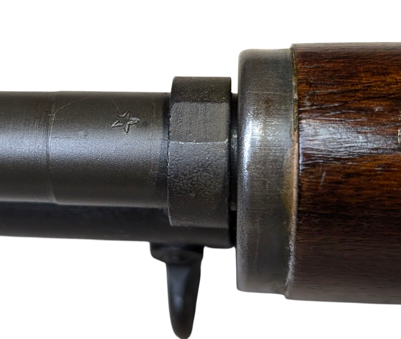 Straight-grained handguards, with enlarged lower band and .136” drill rod for retaining pin. The rear handguard has been staked in place to eliminated contact with the receiver.