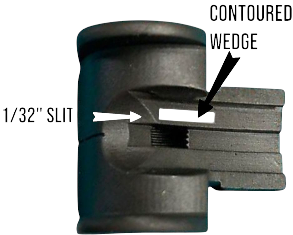 Perhaps the most unique modification the manuals contained was the cutting and wedging of the rear sight base to increase aperture tightness in the guideway. As many who have rapid-fired the M1 Garand in competition know, the aperture can be prone to “jump” around. To remedy this, a 1/32” slit was cut 3/32” deep into the left side of the rear sight base, and a contoured wedge driven into the slit to increase the tension on the aperture in the rear sight base guideway. The rear sight base was annealed prior to cutting and hardened following installation of contoured wedge. Lapping compound is then used to fit the aperture into the rear sight base. According to former RTE armorer Gus Fisher the modification of the rear sight base was problematic. The cutting of the base, despite annealing and hardening, would severely weaken it. The benefit of aperture tightness did not last long, and the process had to be repeated frequently.
