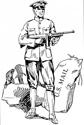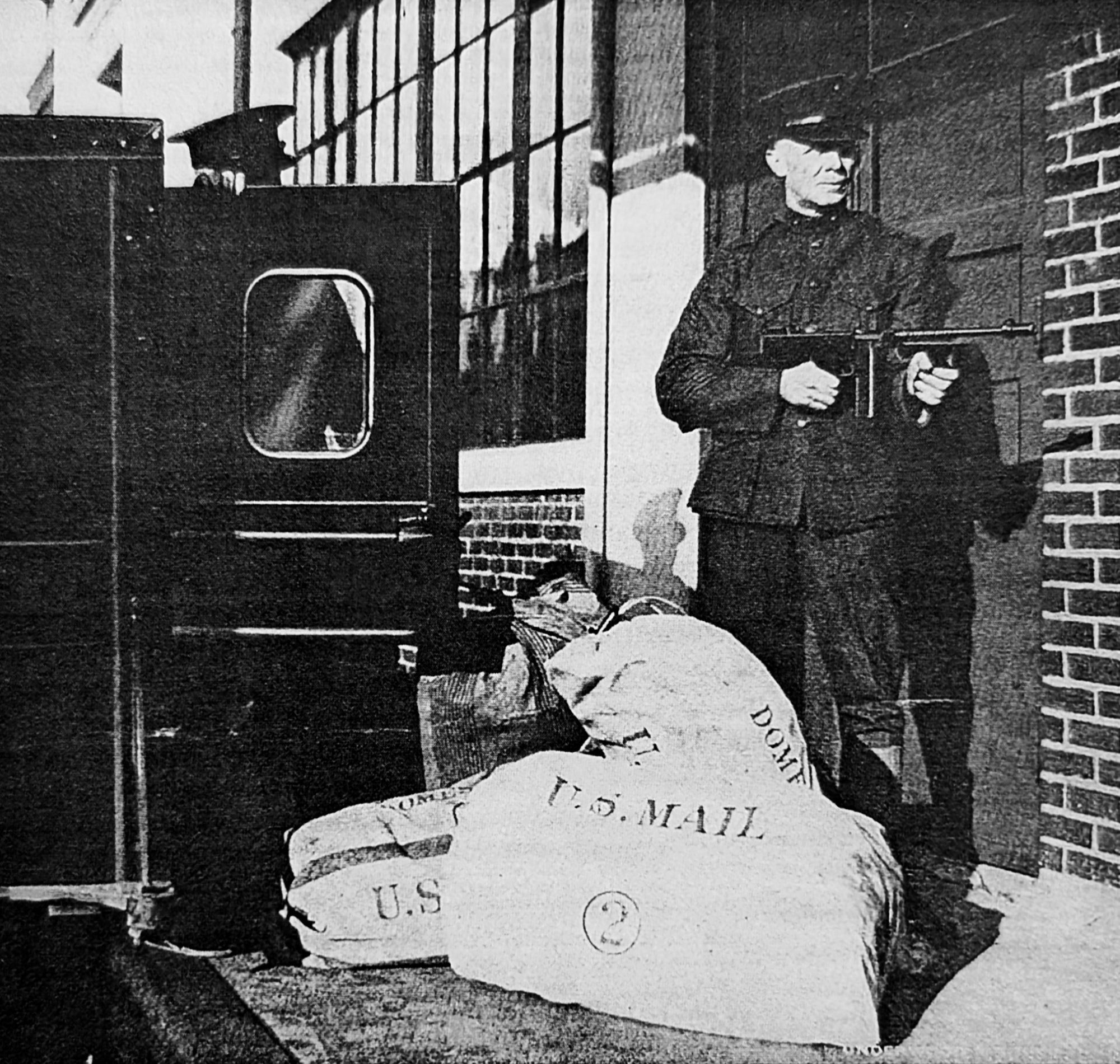 In order to protect U.S. Postal Service deliveries from frequent robberies, Marines were dispatched with the TSMG and M1897 Trench Gun supplementing their standard arms. While this duty would only last for several months, it was well publicized. Legends that the Postal Service purchased the first 250 TSMGs for the Marines to guard the mail with have been disproven by archival documentation, but still persist amongst the general firearms collecting community.