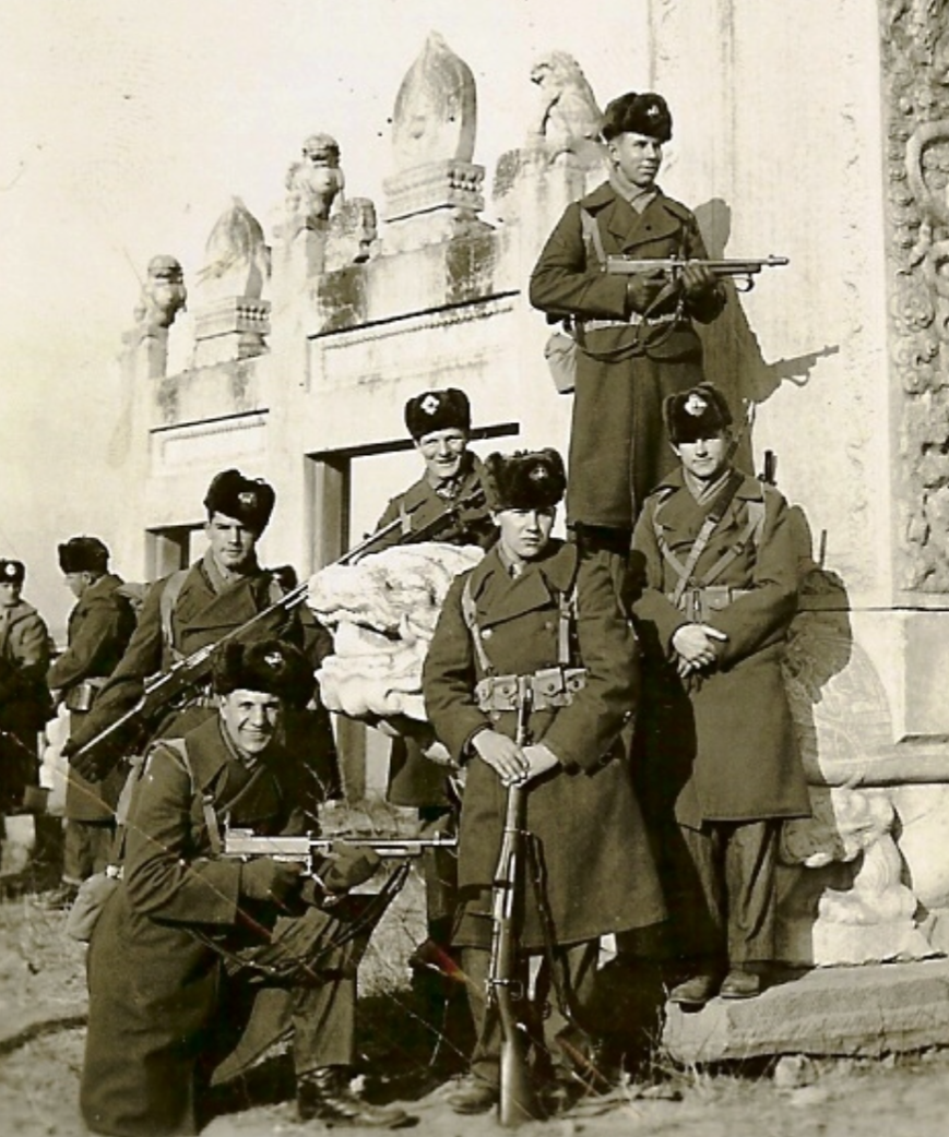 Left: Marine 1st Lt Lewis B. “Chesty” Puller and Gunnery Sergeant William “Ironman” Lee with Guardia Nacionale troops in Nicaragua, armed with M1928 Navy’s, one with a pistol grip and another with a straight grip (NARA). Right: Marines in Nicaragua with a variety of weapons: a M1918 Browning Automatic Rifle, a Springfield M1903 with a VB Grenade Launcher, and two M1928 Navy TSMGs. One has a 50 round “L Drum”, while the other has a 20 round stick magazine (USMC).