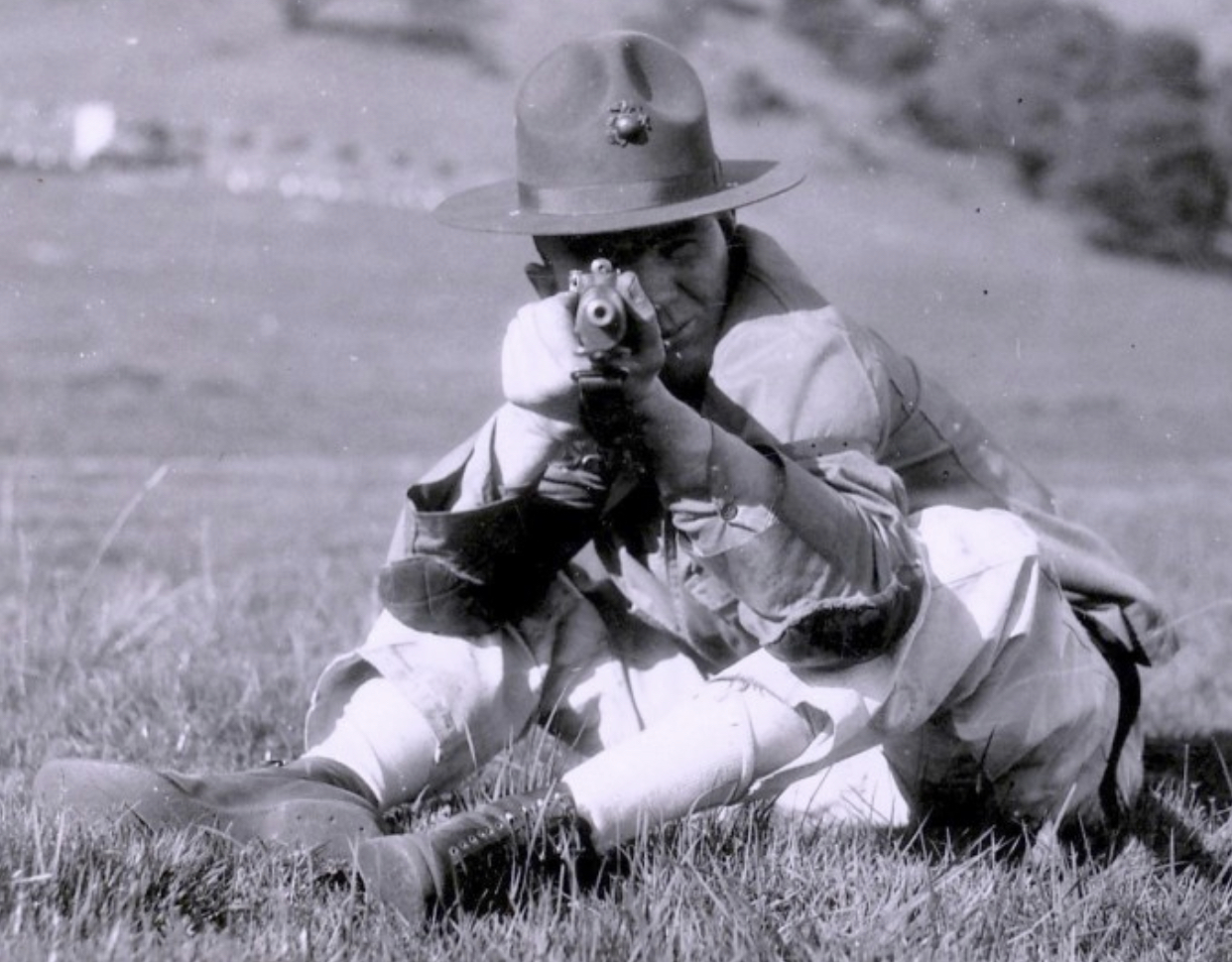 The Marine rifle team on the range, practicing the prone and offhand positions (NARA).
