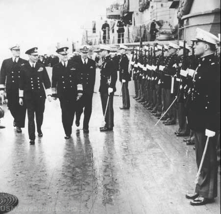 Marines of the London Detachment with their new M1 Garands in 1941, and being inspected by King George in 1942 (NARA & Rick Slater).