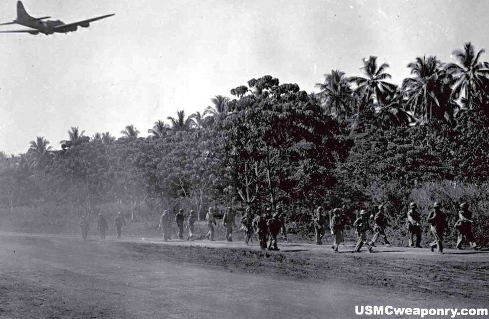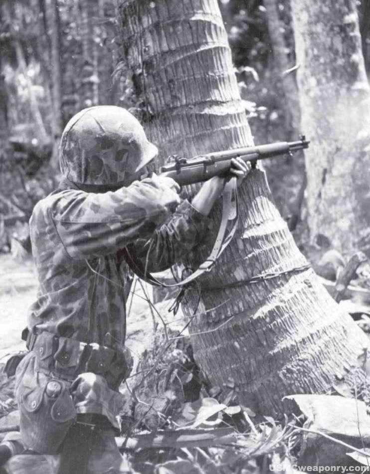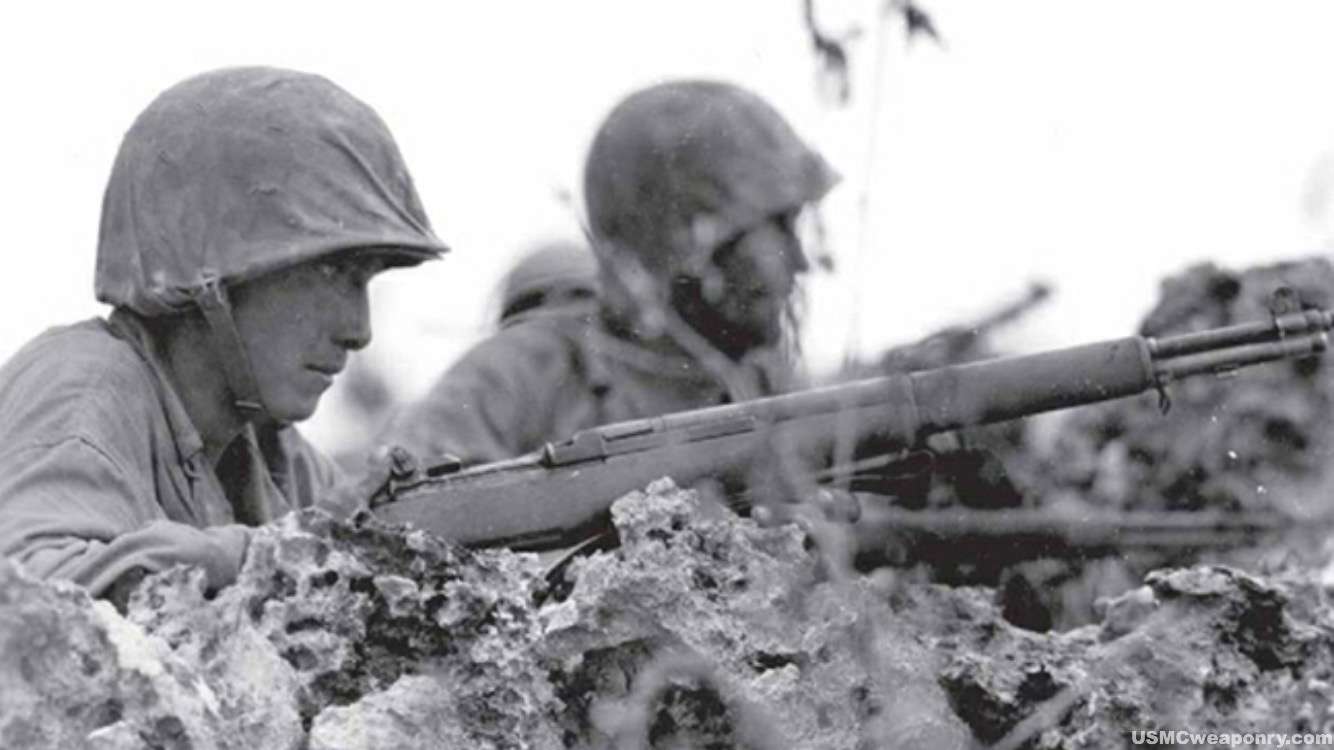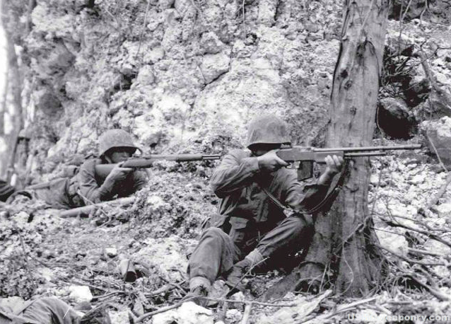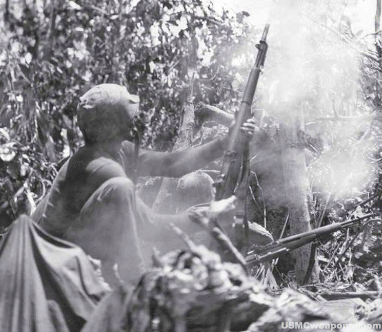 Marines in combat with their M1 Garands, 1943 (USMC & NARA).