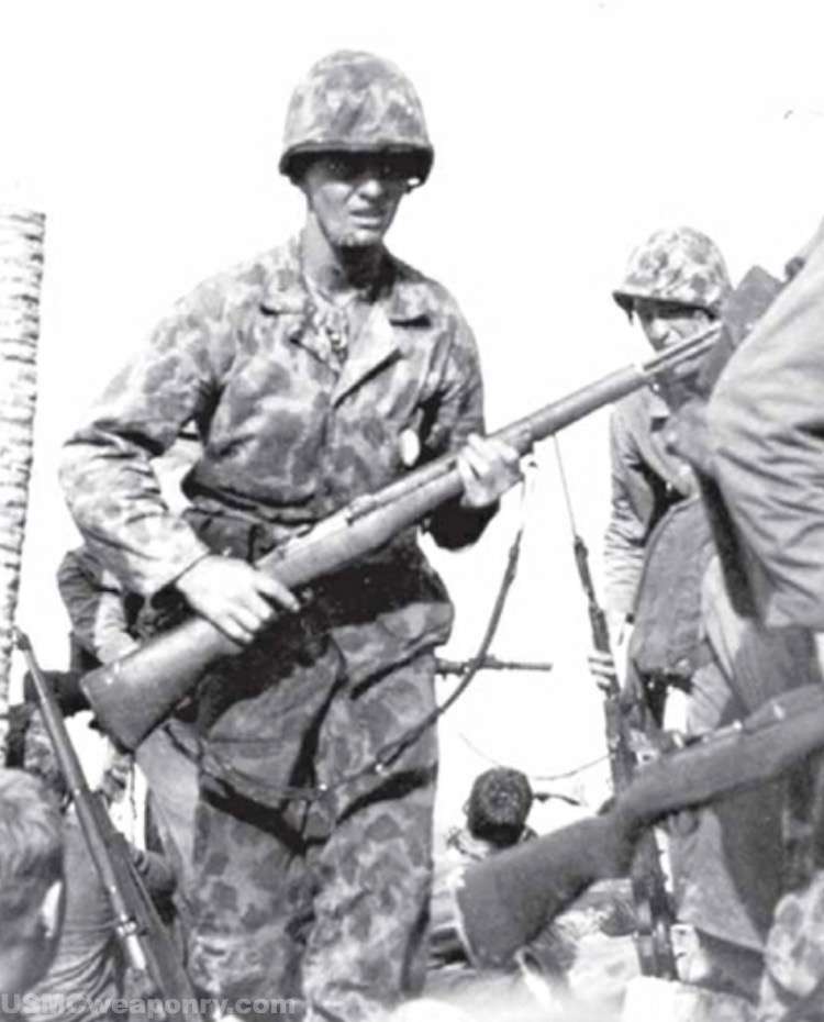 Marine with an early M1 Garand, as evident by the “flush-nut” rear sights (NARA).