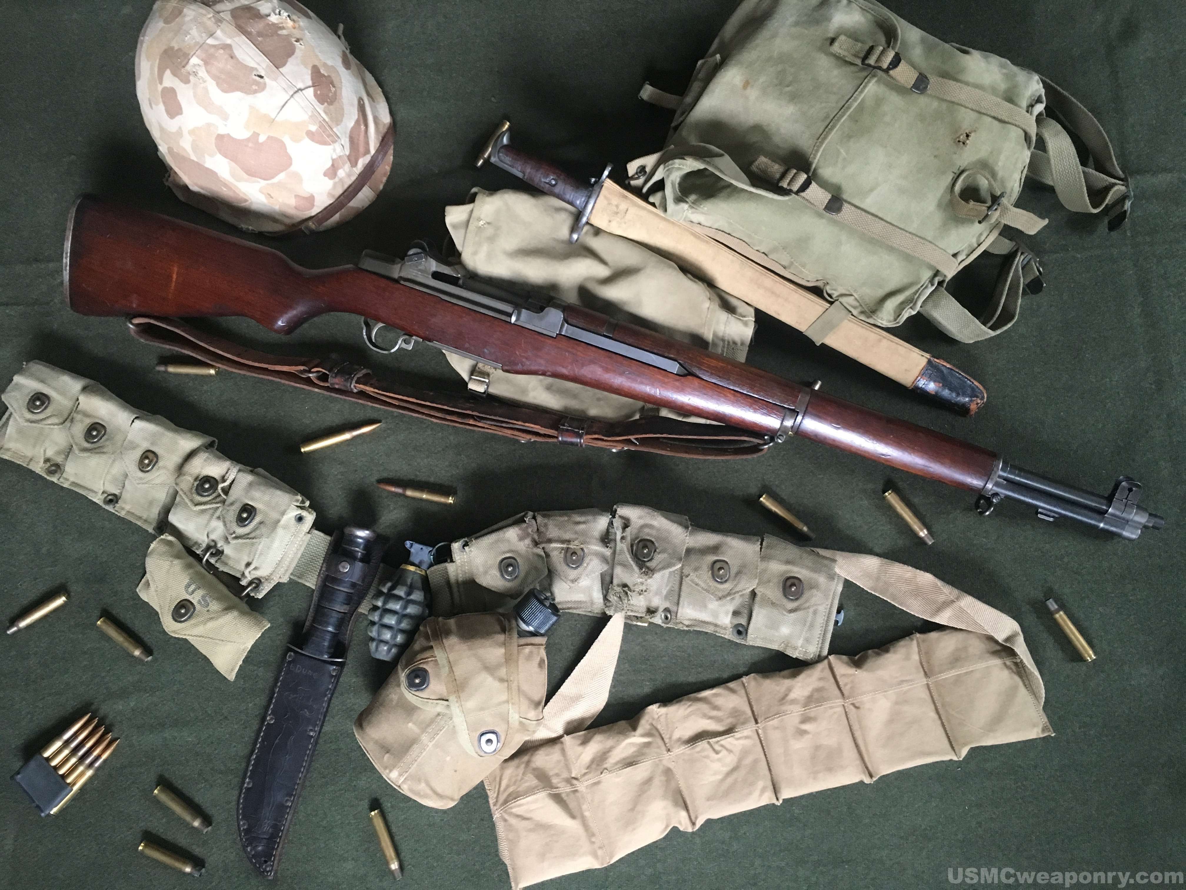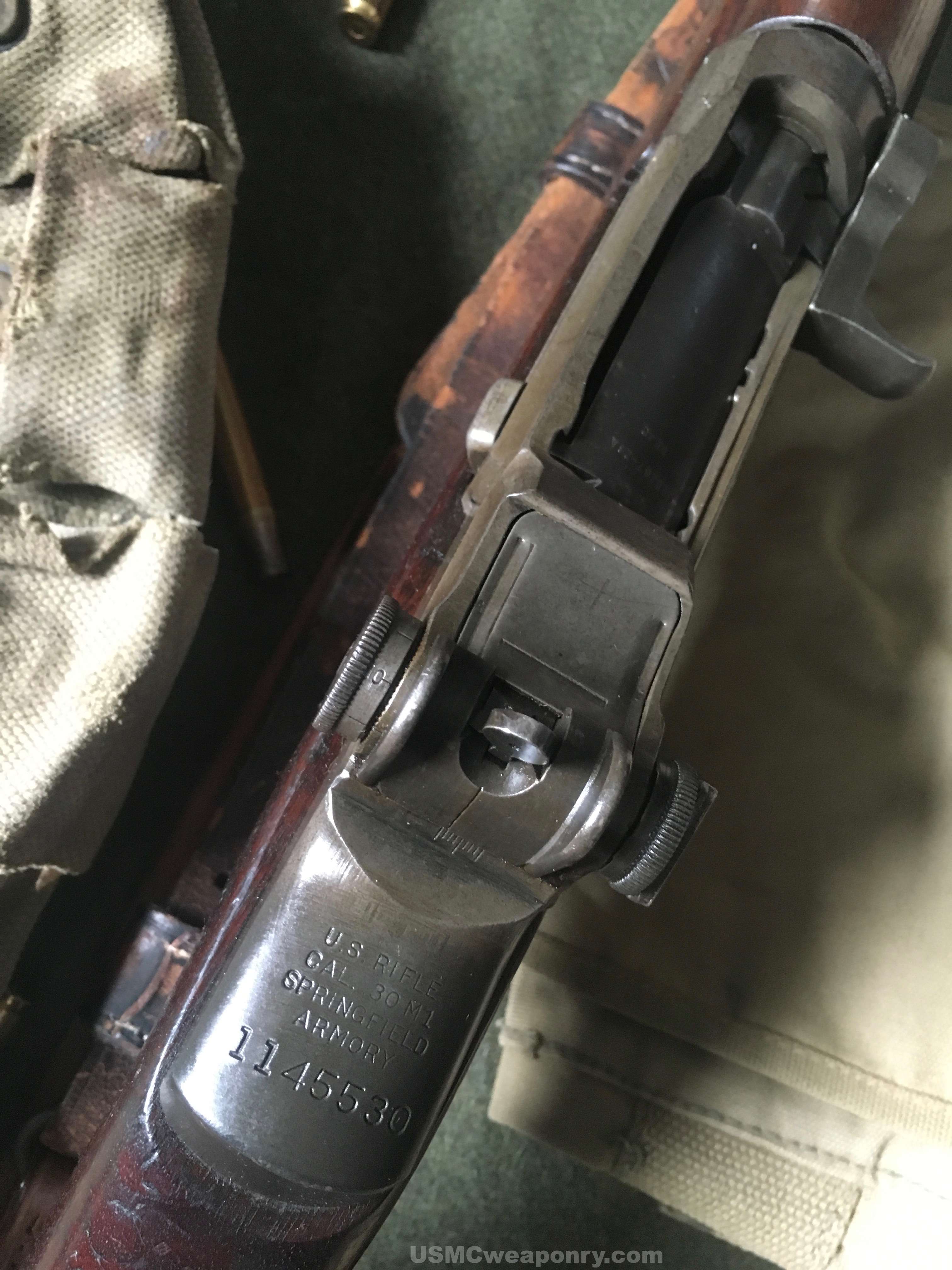 The Marine Corps would embark on campaigns all over the South Pacific in the fall of 1943 as part of the “island hopping” strategy. The the 1st Marine Division would occupy the soaked jungles of Cape Gloucester while the 2nd Marine Division would assault the Tarawa Atoll. The 3rd Marine Division’s combat debut would take place on the island of Bougainville. The Marines who fought in those campaigns were fully armed with the M1 Garand, as the venerable M1903 Springfield had been officially relegated to secondary roles in all units. To be ready for the island hopping campaigns, January through April of 1943 saw the Marine Corps allotted 22,000 M1s per month, a priority amount considering the service’s smaller size. A majority of these rifles would be in the Springfield Armory 1.14 through 1.15 million serial number range, the first of several significant groupings of USMC M1s identified. Later shipments often included Springfield Armory Garands from the 1.56 and 1.86 ranges, particularly amongst the 3rd and 5th Marine Divisions. The early 2 million serial number range is dense with USMC issue M1s, as well as the late 1944 3.2 million range. By late 1943, the M1 Garand had come of age as the Marine Corps’ main battle rifle of the Second World War. Many a grunt would come to appreciate the M1’s excellent performance and volume of fire, taking full advantage of a the Garand’s superiority over the bolt action Japanese Arisaka.