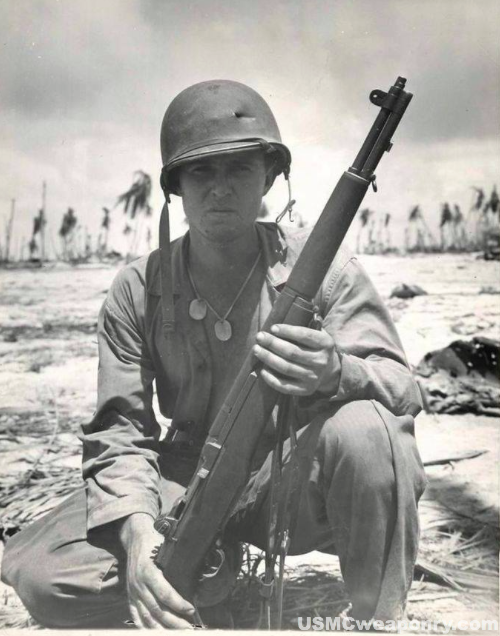 The M1 Garand proved very much up to job during the three days of vicious fighting at Tarawa (USMC & NARA).