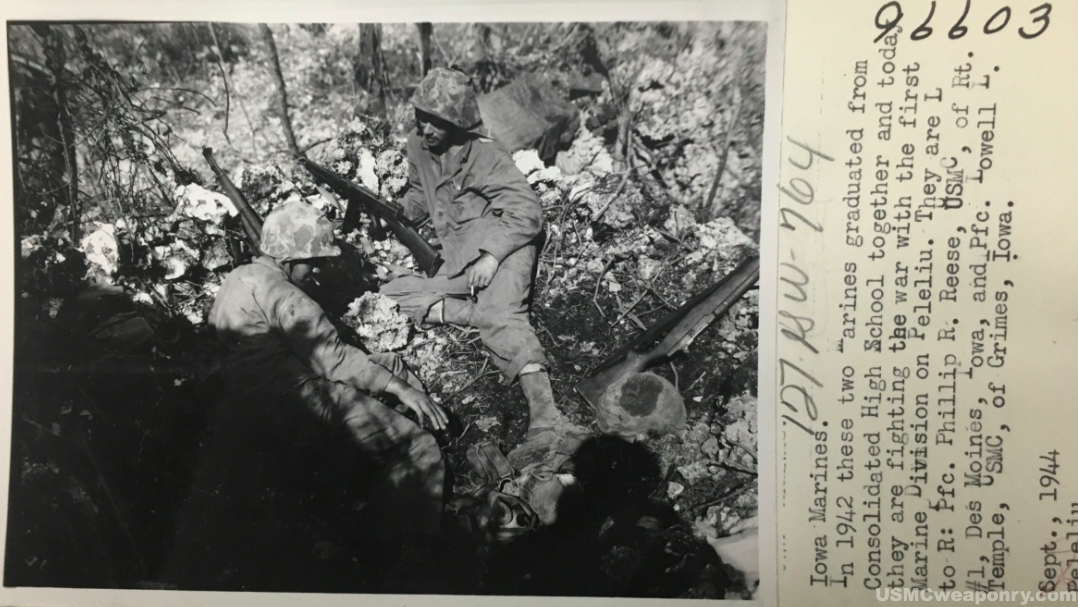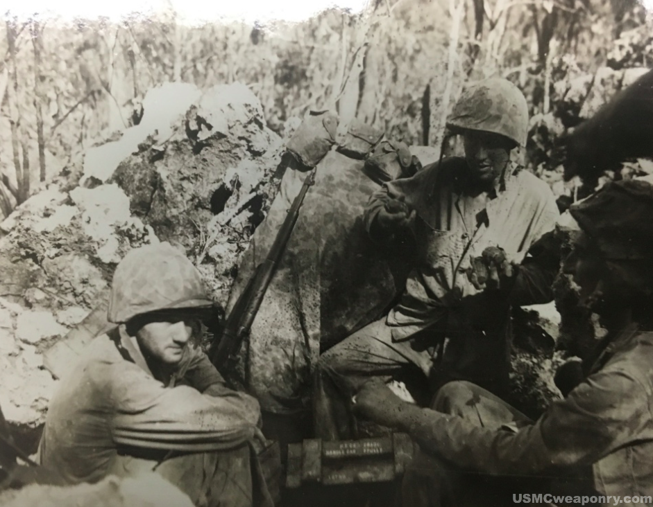 The 1st Marine Division frequently employed the M1 Garand in its secondary role as a rifle grenade launcher in the Umurbrogol Mountains of Peleliu (photos: USMC & NARA).