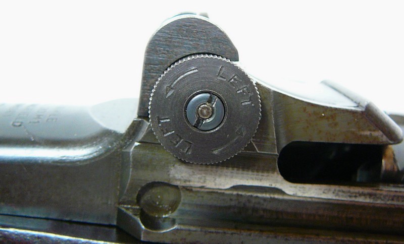 The earliest version of the M1 Garand rear sight, known as the “flush nut” sight, which performed poorly in combat. Often rubbing on an infantryman’s web gear while the rifle was slung over the shoulder, it would come loose and fall off. The solution to this was the implementation of the “lock bar” rear sight system, which firmly locked the rear sights in place (Norton collection).
