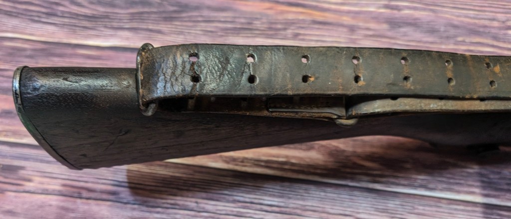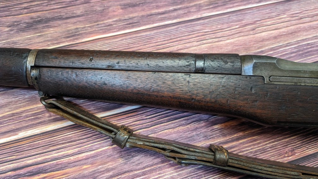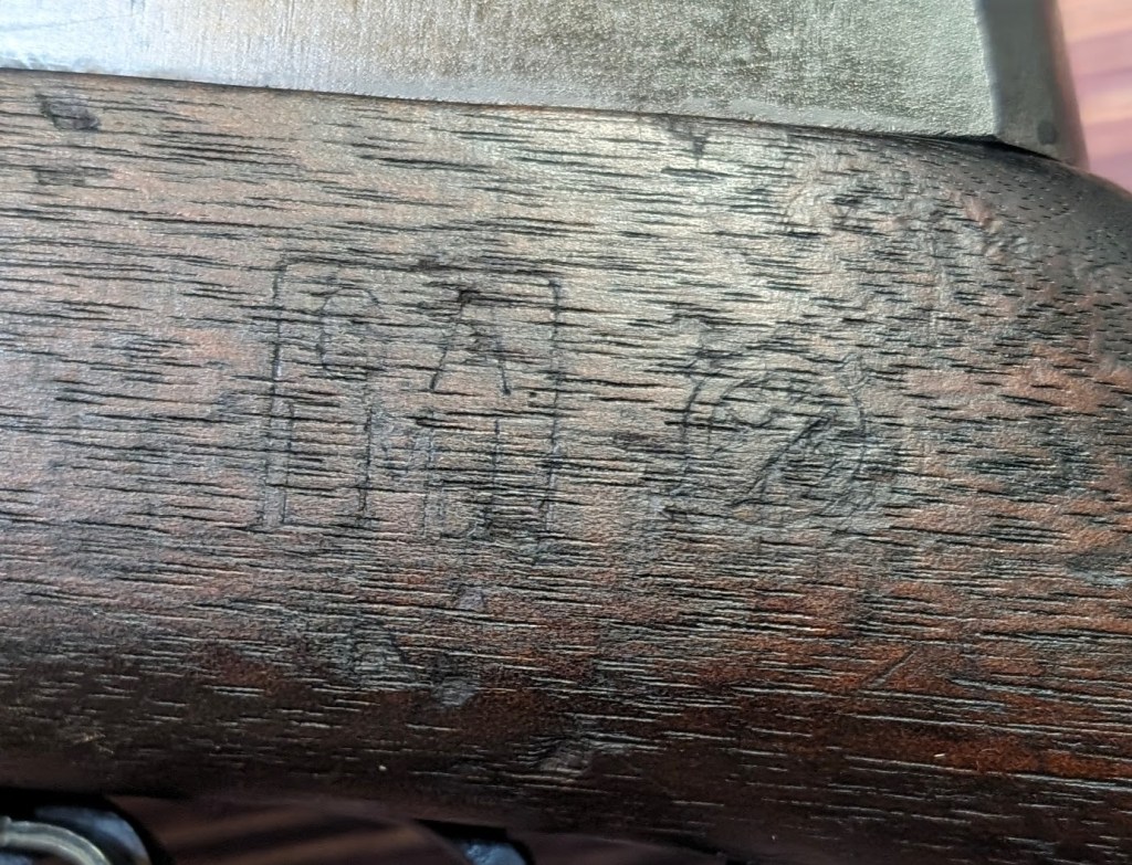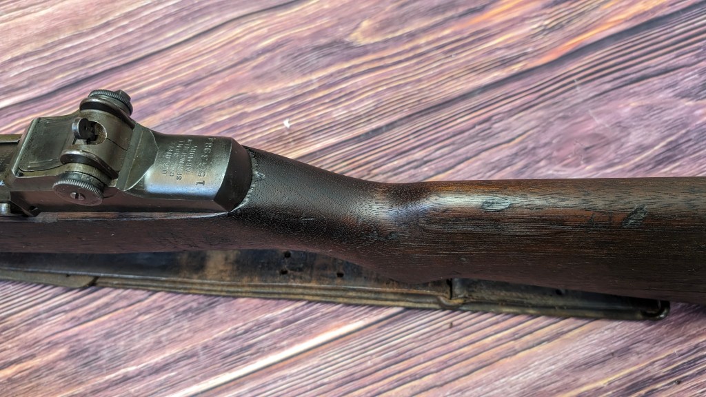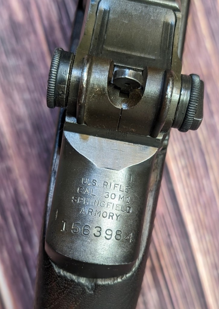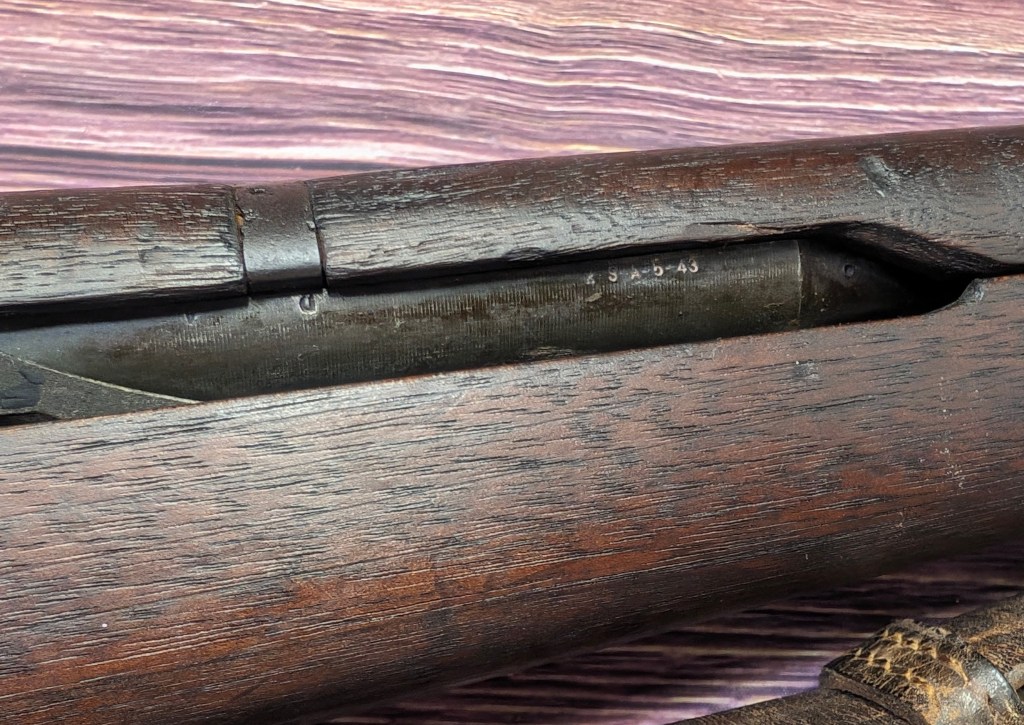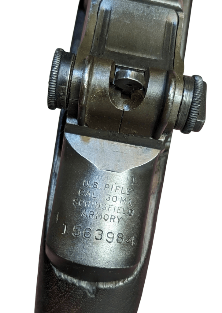 USMC Springfied Armory M1 Garand #1563984, one of 30 “Guam Garands” used by the Guamanian Local Security Patrol Force (LSPF) who worked in tandem with the Marines to clear Japanese resistance following the battle. Overwhelming evidence suggests these 30 rifles were given to the LSPF by the 3rd Marine Division. Either original or WWII field rebuilds, the Guam Garands are exceptional time capsules in rare company as they can be tied to a specific Marine Corps battle. Renowned author Scott Duff’s research on the Guam Garands can be viewed here (Plowman collection).